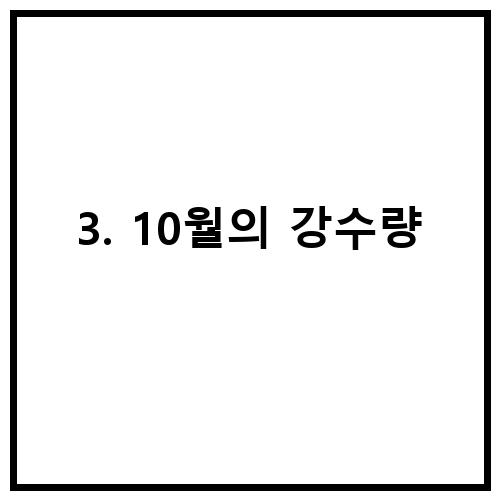 10월은 가을비가 많이 내리는 달로, 구름이 많이 끼고 비 소식이 자주 들리는 달이기도 합니다. 특히 10월 중순 이후로는 가을비의 양이 더욱 늘어나며, 가을의 절정을 맞이하는 느낌을 주기도 합니다. 이러한 강수량으로 인해 우산을 늘 손에 쥐고 다녀야 하는 10월은 비가 내릴 때는 집안에서 편안히 쉬는 것도 좋은 방법입니다.