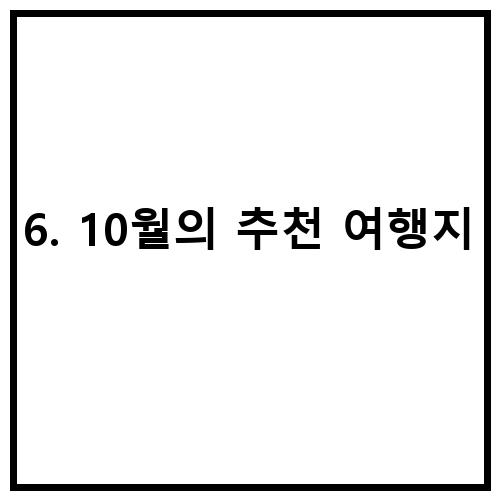 10월은 한국의 가을을 느낄 수 있는 여행지로 유명한 곳들이 많습니다. 대표적인 여행지로는 남한산성, 단풍이 아름다운 남이섬, 가을 풍경이 아름다운 남해, 한국의 가을 명소인 남한산 등이 있습니다. 특히 단풍이 아름다운 남이섬은 10월 중순 이후로는 가을 단풍이 가장 아름다운 때를 맞이하기 때문에 많은 관광객들이 찾는 곳 중 하나입니다.