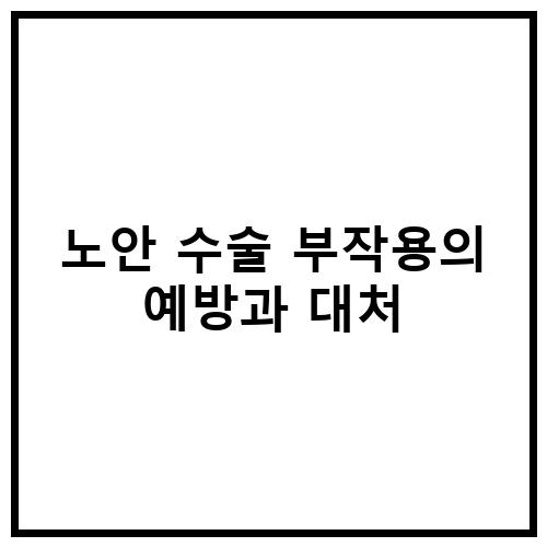 노안 수술 부작용을 예방하기 위해서는 수술 전 안과 전문의와 충분한 상담을 통해 수술의 위험성을 파악하는 것이 중요합니다. 수술 후에는 안과 전문의의 지시에 따라 꾸준한 관리와 치료를 받아야 합니다. 또한 수술 후에는 안구 건조증이 발생할 수 있으므로 눈을 자주 깜빡이고 눈을 쉬게 해주는 것이 좋습니다.
