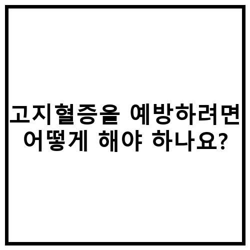 고지혈증을 예방하려면 어떻게 해야 하나요?