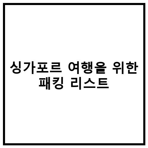 싱가포르 여행을 위한 패킹 리스트를 작성하여 필요한 물품을 체계적으로 준비할 수 있습니다. 아래는 싱가포르 여행을 위한 패킹 리스트 예시입니다.