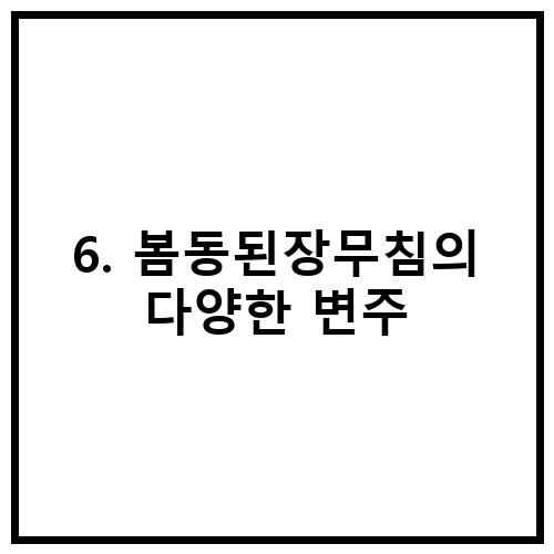봄동된장무침은 봄동과 된장을 주 재료로 하는 요리이지만, 다양한 변주가 가능합니다. 예를 들어, 고추장을 사용하여 매콤하게 만들거나, 고춧가루 대신 고추장을 사용하여 더 진한 맛을 낼 수도 있습니다. 또한, 다진 마늘 대신 마늘을 통째로 넣어 특별한 향을 낼 수도 있습니다.