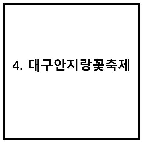 4월에 대구에서 열리는 대구안지랑꽃축제는 대구시 일대의 안지랑에서 만발하는 봄꽃들을 감상할 수 있는 축제로, 매년 많은 꽃을 보러 찾는 관광객들의 발걸음이 끊이지 않습니다. 대구안지랑꽃축제는 다양한 종류의 꽃들을 한눈에 볼 수 있는 꽃밭부터 다양한 꽃 문화체험 프로그램까지 다채로운 프로그램이 마련되어 있어 봄을 느낄 수 있는 행사로 손꼽힙니다. 또한 축제 기간 중에는 다양한 예술가들의 공연과 전시도 열려 꽃을 보는 즐거움 뿐만 아니라 문화적인 즐거움까지 함께 누릴 수 있습니다.