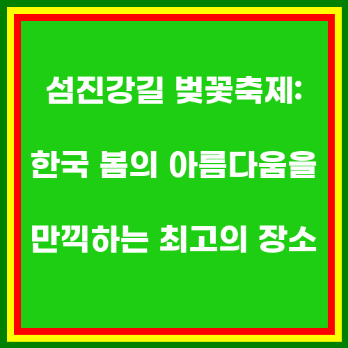 한국의 봄은 벚꽃이 만개하는 아름다운 계절입니다. 섬진강길 벚꽃축제는 한국에서 가장 아름다운 벚꽃 축제 중 하나로 손꼽힙니다. 이곳은 벚꽃이 만개하는 풍경을 만끽할 수 있는 최고의 장소이며, 다양한 이벤트와 프로그램을 통해 방문객들에게 즐거운 경험을 선사합니다. 따뜻한 봄날에 섬진강길 벚꽃축제를 방문하여 아름다운 벚꽃 터널을 걸으며 봄의 아름다움을 만끽해보세요. 함께하는 가족, 연인, 친구와 함께 좋은 추억을 만들 수 있는 섬진강길 벚꽃축제에서 특별한 시간을 보내보세요.