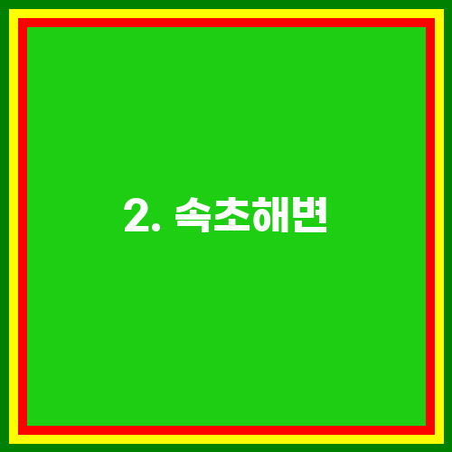 속초해변은 속초를 대표하는 관광 명소 중 하나로 맑은 바다와 아름다운 해안선이 함께 어우러진 곳입니다. 이곳은 해수욕을 즐기기에 안성맞춤이며, 해안을 따라 산책을 즐기거나 자전거를 타며 바다 바람을 맞으며 여유로운 시간을 보낼 수 있습니다. 또한, 해안가에는 다양한 음식점과 카페가 있어 해변을 즐기면서 맛있는 식사나 음료를 즐길 수 있습니다.