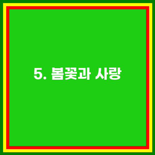 봄꽃은 사랑의 상징으로도 유명합니다. 봄에 만개하는 꽃들은 사랑하는 이들에게 사랑과 희망을 상징하며, 봄꽃을 함께 감상하는 것은 로맨틱한 분위기를 만들어줍니다. 봄꽃이 만개하는 계절에는 연인들이 함께 봄꽃을 감상하고 산책하는 것이 인기 있는 데이트 코스 중 하나입니다. 특히, 벚꽃 길이 유명한 지역에서는 연인들이 많이 모여 봄을 맞이하는 모습을 볼 수 있습니다.