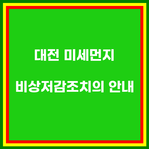 대전 미세먼지 비상저감조치는 대전 지역에서 발생하는 미세먼지 농도가 높아졌을 때 시행되는 조치입니다. 이 조치는 대기 중의 미세먼지 농도를 낮추고 시민들의 건강을 보호하기 위해 시행됩니다. 대전시는 미세먼지 농도가 높아질 것으로 예상될 때 미리 조치를 통보하고, 시민들에게 안내를 제공하여 미세먼지로부터 건강을 지키도록 도와줍니다.