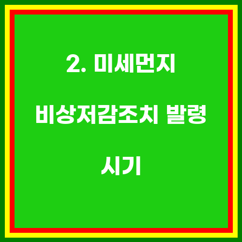 수도권 미세먼지 비상저감조치는 주로 봄과 가을철에 발령되며, 특히 3월부터 6월, 9월부터 11월에 미세먼지 농도가 높아져 발령될 가능성이 높습니다. 이 기간에는 대기가 건조하고 바람이 강하게 불어 미세먼지가 쉽게 증가하기 때문에 시민들은 미세먼지 비상저감조치에 대한 대비가 필요합니다.