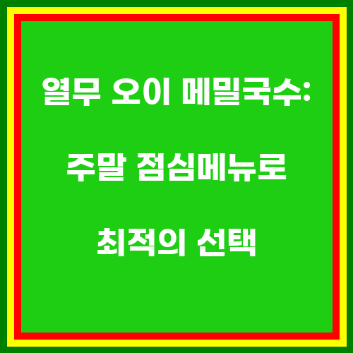 주말에는 보통 가족이나 친구들과 함께 식사를 즐기는 시간이 많습니다. 이때 상큼하고 건강한 열무 오이 메밀국수를 준비하여 함께 즐기면 건강한 식사를 할 수 있을 뿐만 아니라 가족들의 입맛을 사로잡을 수 있습니다. 또한 메밀면의 쫄깃한 식감과 다양한 채소들이 들어간 메밀국수는 여름철 더운 날씨에 가볍게 먹기에 최적의 요리로 주말 점심메뉴로 딱입니다.