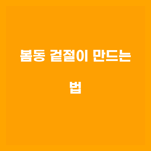 봄동 겉절이를 만들기 위해서는 먼저 봄동을 깨끗이 씻은 후 물기를 제거해야 합니다. 그리고 봄동을 적당한 크기로 썰어 양념 재료와 함께 넣고 잘 섞어주어야 합니다. 겉절이를 만들 때는 간장, 고춧가루, 다진 마늘, 설탕, 참기름 등의 양념을 사용하는데, 각 재료의 양과 비율을 잘 맞춰야 합니다. 봄동 겉절이는 만들어 두면 냉장보관이 가능하므로 여러 번 즐길 수 있어서 편리합니다.