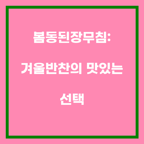 봄동된장무침은 한국 전통 음식 중 하나로, 겨울철에 가장 어울리는 반찬 중 하나입니다. 봄동은 겨울철에 푸르게 자란 채소로, 식감이 살아있고 상큼한 맛이 특징입니다. 된장무침은 된장과 함께 색다른 맛을 즐길 수 있는 반찬으로, 한국 가정에서 자주 먹는 음식 중 하나입니다. 봄동된장무침은 봄동을 된장과 함께 볶아내어 맛을 낸 요리로, 채소의 식감과 된장의 풍부한 맛이 어우러져 맛있는 조합을 이룹니다.