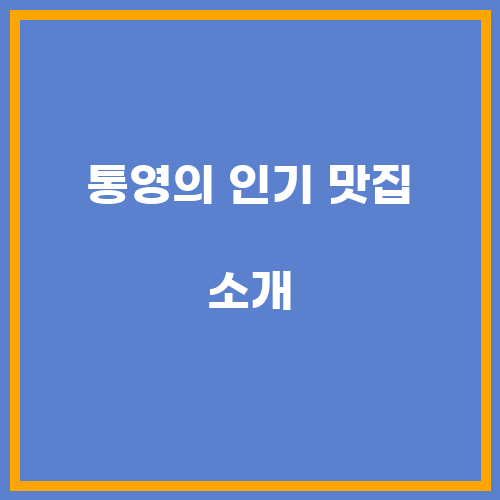 통영의 인기 맛집 소개