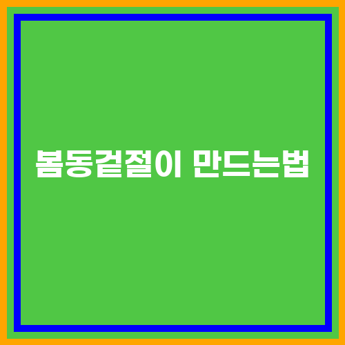 봄동겉절이는 봄동이라는 채소를 이용하여 만드는 전통적인 한국 요리입니다. 봄동은 봄철에 열매를 맺는 식물로, 새콤한 맛과 향이 특징입니다. 봄동겉절이는 봄동을 소금에 절여서 만든 절이 요리로, 상큼하고 시원한 맛이 일품입니다. 봄동겉절이는 밥상에 차곡차곡 담아 먹으면 맛과 영양을 동시에 챙길 수 있는 요리입니다.
