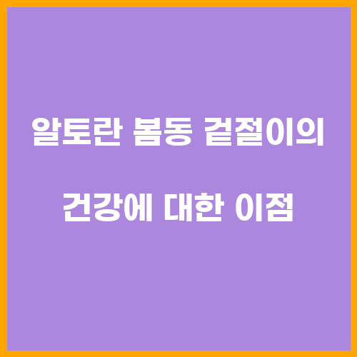 알토란 봄동 겉절이는 건강에 매우 좋은 음식입니다. 봄동은 비타민 C와 식이 섬유가 풍부하여 면역력을 높여주고 소화에 도움을 줍니다. 또한, 봄동에 함유된 식이 섬유는 장 건강에 도움을 주며, 다이어트나 다이어트 중인 사람들에게도 좋은 식품으로 손색이 없습니다. 또한, 봄동에 함유된 다양한 영양소는 피로 회복에 도움을 주고, 피로를 줄여주는 효과도 있습니다. 따라서, 알토란 봄동 겉절이를 적절히 섭취하여 건강에 도움을 줄 수 있을 것입니다.