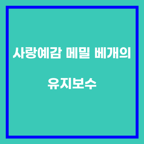 사랑예감 메밀 베개는 올바른 유지보수를 통해 오랫동안 사용할 수 있다. 먼저, 메밀 베개는 천연 소재이기 때문에 물에 젖지 않도록 주의해야 한다. 또한, 메밀 베개는 직사광선을 피해 건조시키는 것이 좋다. 또한, 메밀 베개는 먼지와 이물질로부터 보호하기 위해 깨끗한 상태를 유지해야 한다. 또한, 메밀 베개는 주기적으로 탈취제나 탈취스프레이를 이용해 청소를 해주는 것이 좋다. 또한, 메밀 베개는 천연 소재이기 때문에 세탁이 어렵기 때문에 주기적으로 탈취제나 탈취스프레이를 이용해 청소를 해주는 것이 좋다.
