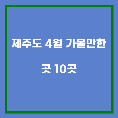 4월에 제주도를 방문한다면, 위에서 소개한 10곳을 꼭 방문해보세요. 제주도의 아름다운 자연과 문화를 느끼며 즐거운 시간을 보낼 수 있을 것입니다. 즐겁고 행복한 여행 되세요!
