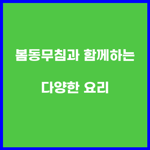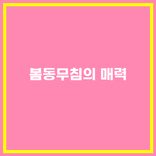 봄동무침은 봄철에 제철을 맞이하는 봄동을 이용해 만드는 요리로, 봄철에 가장 맛있고 신선한 봄동을 이용해 만들어야 가장 맛있는 봄동무침을 즐길 수 있습니다. 봄동은 봄철에 싱싱하게 자라는 채소로, 봄철에 먹으면 상큼하고 맛있는 맛을 느낄 수 있습니다. 따라서 봄철에는 봄동무침을 자주 만들어 먹어보는 것이 좋습니다.
