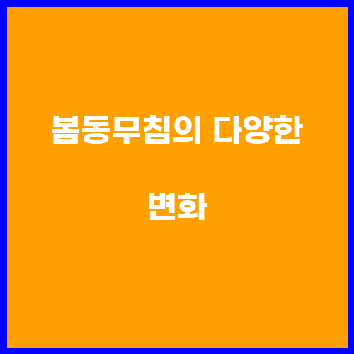 봄동무침은 다양한 야채와 함께 함께 먹을 수 있어 변화를 줄 수 있는 요리입니다. 봄동무침에는 양파, 대파, 마늘 외에도 다양한 야채를 넣어 다양한 맛을 즐길 수 있습니다. 또한 양념장에 고춧가루와 고추장 외에도 간장, 설탕, 식초, 참기름 등을 넣어 양념의 맛을 조절할 수 있습니다. 따라서 봄동무침은 자신만의 창의적인 아이디어로 다양한 변화를 줄 수 있는 요리입니다.