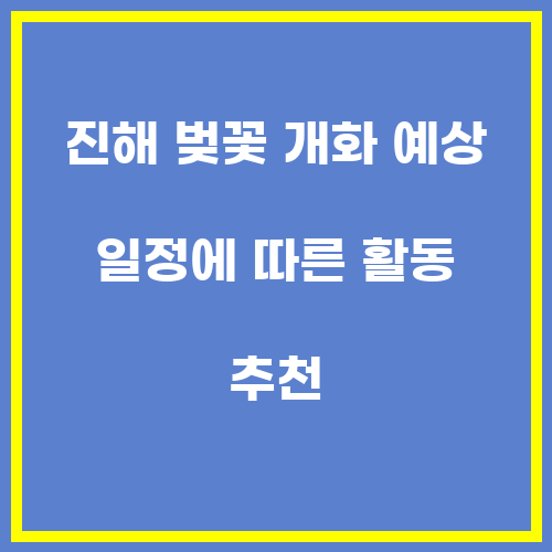 진해 벚꽃 개화 예상 일정에 따른 활동 추천으로는 주변 관광 명소를 방문하는 것을 추천합니다. 주변에는 다양한 관광 명소가 있으며, 벚꽃을 감상하면서 지역의 역사와 문화를 경험할 수 있는 장소를 방문하는 것이 좋습니다. 또한, 주변에는 산책로나 자전거 도로도 많이 마련되어 있으므로, 자연을 즐기며 휴식을 취할 수 있는 활동도 추천합니다.