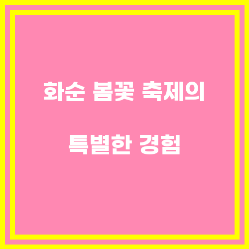 화순 봄꽃 축제는 관광객들에게 특별한 경험을 선사하는데, 화순의 아름다운 봄꽃들을 감상하며 자연 속에서 힐링을 할 수 있는 기회를 제공합니다. 봄철 화순의 아름다운 꽃들은 그들만의 아름다움과 향기로 관광객들을 매료시키며, 봄의 정취를 느끼고 즐길 수 있는 특별한 경험을 선사합니다. 또한, 축제 기간 동안에는 다채로운 문화행사와 공연이 열리며, 관광객들은 전통 예술과 문화를 경험하며 봄의 기운을 만끽할 수 있습니다. 봄꽃 축제는 화순 지역의 아름다운 자연과 문화를 경험할 수 있는 소중한 기회를 제공하여, 관광객들에게 특별한 추억을 선사합니다.