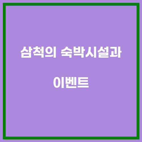 삼척에는 다양한 숙박시설이 있어 관광객들이 편안한 여행을 즐길 수 있습니다. 삼척에는 펜션부터 호텔까지 다양한 숙박시설이 있어서 여행객의 취향에 맞는 숙소를 선택할 수 있습니다. 또한, 삼척은 매년 다양한 이벤트를 개최하여 관광객들에게 즐거운 추억을 선사합니다. 예를 들어, 삼척해변에서는 해수욕장 축제가 열리며, 음악 공연과 다양한 이벤트가 진행됩니다.