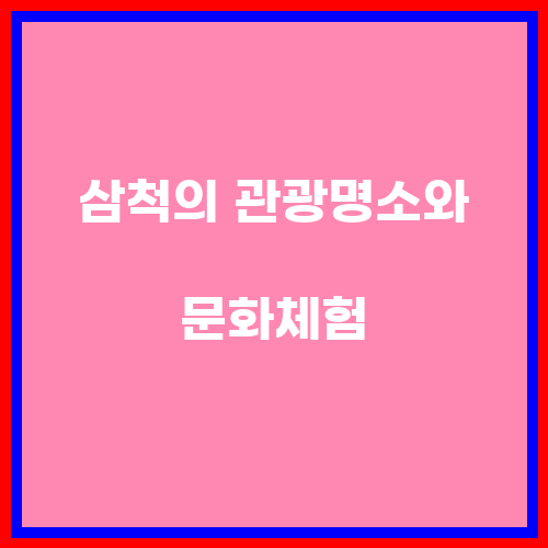 또한, 삼척에는 다양한 체험 프로그램을 제공하는 곳도 많습니다. 예를 들어, 삼척에는 바다에서 낚시를 즐길 수 있는 프로그램이 있습니다. 또한, 설악산 국립공원에서는 등산 체험 프로그램이 운영되며, 자연을 느끼며 건강을 챙길 수 있습니다. 이처럼 삼척은 다양한 관광명소와 문화체험을 통해 관광객들에게 특별한 경험을 제공합니다.