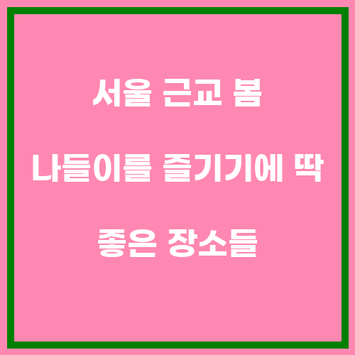 서울 근교에 위치한 다양한 관광지들은 봄철에 방문하기에 최적의 조건을 갖추고 있습니다. 봄 나들이를 즐기기에 딱 좋은 장소들을 소개해 드리겠습니다.