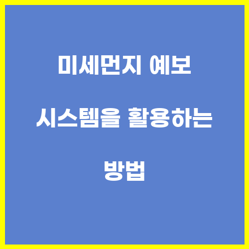 미세먼지 예보 시스템을 활용하기 위해서는 기상청이나 관련 기관의 웹사이트나 앱을 통해 미세먼지 예보 정보를 확인할 수 있습니다. 또한, 소셜미디어를 통해 미세먼지 예보를 실시간으로 공유하는 계정을 팔로우하거나, 문자메시지나 이메일을 통해 미세먼지 예보를 받아볼 수도 있습니다. 미세먼지 예보를 통해 미세먼지 농도가 높은 날에는 실외활동을 자제하고, 마스크를 착용하는 등의 예방 조치를 취하는 것이 좋습니다.