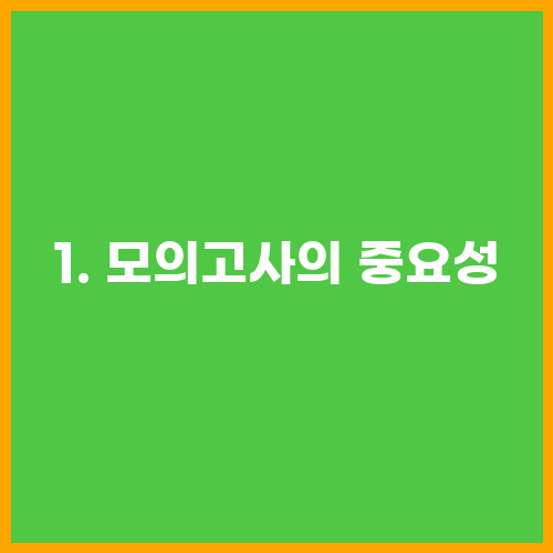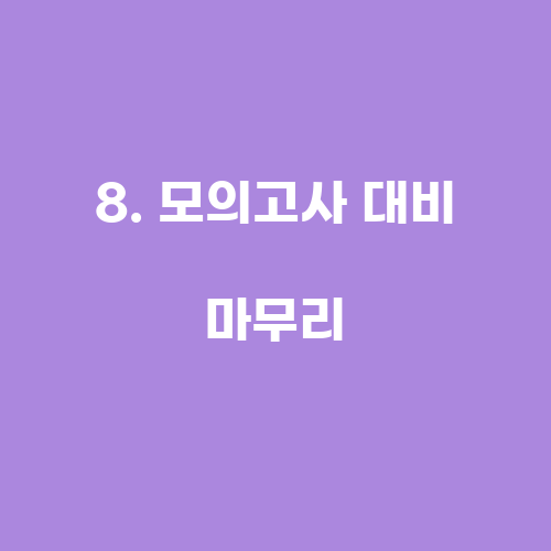 모의고사를 대비할 때는 실전 모의고사를 푸는 것도 좋은 전략입니다. 실전 모의고사는 실제 시험과 유사한 환경에서 시험을 볼 수 있는 기회를 제공해줍니다. 실전 모의고사를 통해 자신의 시험 실력을 확인하고 부족한 부분을 파악할 수 있습니다. 또한, 실전 모의고사를 통해 시험에 대한 긴장감을 해소하고 자신감을 키울 수 있습니다.