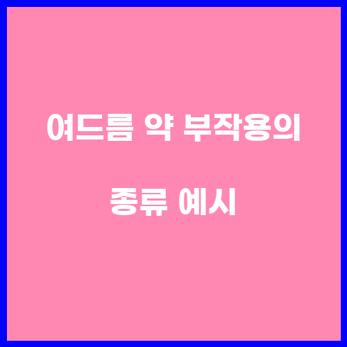 여드름 약 부작용의 종류 예시로는 A약물을 복용하면서 피부가 건조해지고 가려움증이 발생했습니다. 이에 B보습제를 사용하여 피부를 보습시키고 가려움증을 완화시켰습니다. 또한, C약물을 복용하면서 홍조가 심해져서 햇빛을 피하고 온열을 피하는 등의 조치를 취했습니다. 또한, D약물을 복용하면서 피부 염증이 생겨 약물을 조절하고 특별한 치료를 받았습니다.