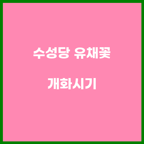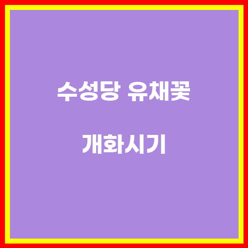 수성당에서 유채꽃이 개화하는 시기는 일반적으로 4월 중순부터 5월 중순까지이다. 이 기간에는 유채꽃이 만발하여 수성당의 정원을 황금빛으로 물들이는 아름다운 광경을 볼 수 있다. 특히 4월 말부터 5월 초까지가 가장 화려한 유채꽃의 개화 시기로, 이때 방문하면 최고의 풍경을 감상할 수 있다.