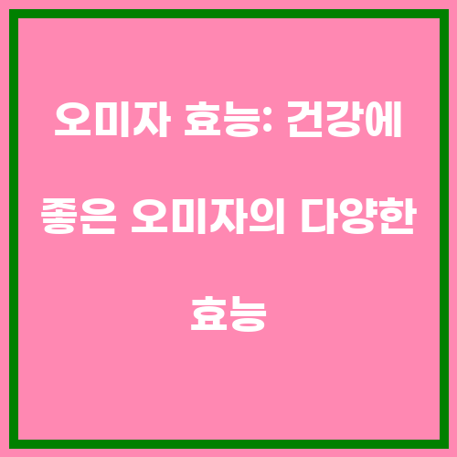 오미자는 건강에 매우 좋은 식물로 알려져 있으며, 다양한 효능을 가지고 있다. 오미자에는 면역력 강화, 소화 개선, 피로회복, 혈액순환 개선, 미백 효과, 다이어트 효과 등 다양한 효능이 있어 다양한 방법으로 소비되고 있다. 따라서 오미자를 적절히 섭취하여 건강을 유지하고, 다양한 질병을 예방하는데 도움이 될 것이다. 오미자를 활용하여 건강한 삶을 살아보자.