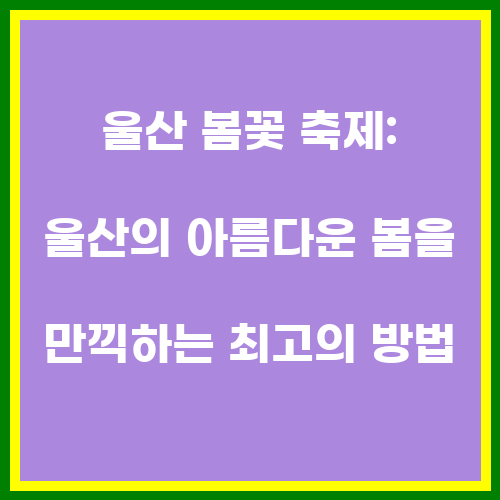 울산은 매년 봄에 다채로운 꽃들이 만발하는 아름다운 풍경으로 유명한 도시입니다. 이른 봄부터 봄 말까지 다양한 종류의 꽃들이 피어나는데, 이를 기념하고 관광객들에게 이를 제공하기 위해 '울산 봄꽃 축제'가 열립니다. 이 축제는 울산시 전역에서 다양한 장소에서 열리며, 많은 사람들이 참여해 봄의 아름다움을 함께 나누는 자리가 됩니다.