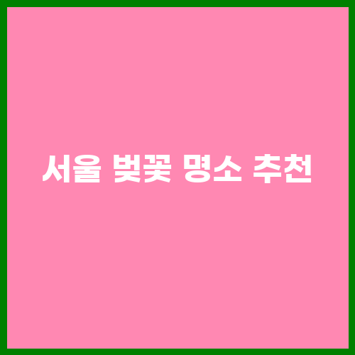 서울 벚꽃 명소 추천