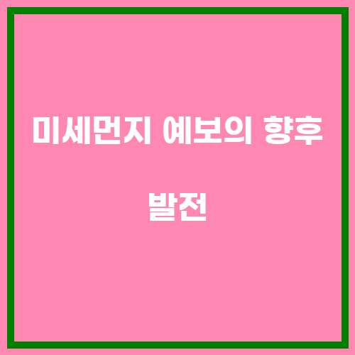 미세먼지 예보는 미래에 더욱 발전하여 더 정확한 정보를 제공할 것으로 기대됩니다. 기상 조건, 대기질 모델 등의 다양한 요소를 고려하여 미세먼지 예보를 수행하는 기술은 더욱 발전할 것으로 예상되며, 이를 통해 시민들이 보다 정확한 정보를 얻을 수 있을 것입니다. 미세먼지 예보를 통해 건강을 지키는 것은 매우 중요한 일이며, 미래에는 더욱 발전된 미세먼지 예보를 통해 더 나은 삶을 살 수 있을 것입니다.