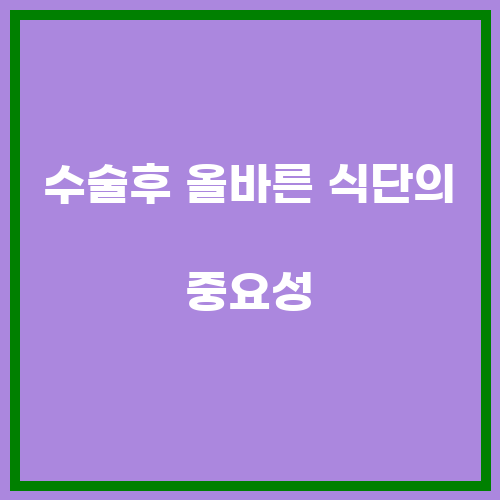 수술 후 올바른 식단은 회복을 돕는 데 중요한 역할을 합니다. 수술 후에는 몸이 손상을 복구하고 면역 시스템을 강화하기 위해 영양소가 필요합니다. 이러한 이유로 수술 후 올바른 식단은 매우 중요합니다. 수술 후에는 영양소가 풍부한 음식을 섭취하여 신체의 회복을 돕고 합병증을 예방하는 것이 중요합니다.