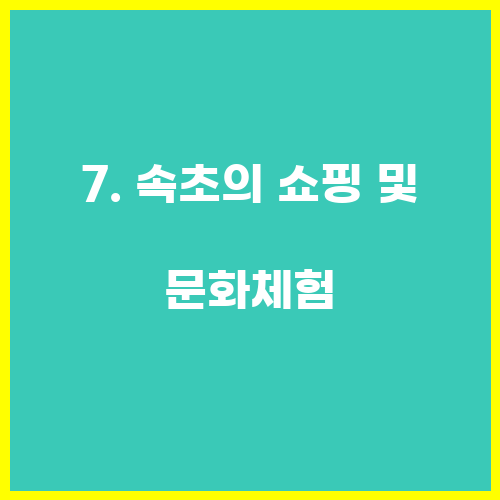 속초를 여행하면서 쇼핑과 문화체험을 즐기는 것도 좋은 방법입니다. 속초에는 다양한 쇼핑몰과 문화체험 프로그램들이 마련되어 있어, 속초 여행 중에는 꼭 한번 방문해보시기를 추천드립니다. 속초의 쇼핑몰은 다양한 상품들을 구매할 수 있는 곳으로, 속초의 문화체험 프로그램은 속초의 전통과 문화를 경험할 수 있는 다양한 활동들을 제공합니다.