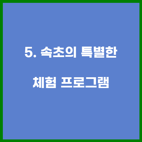 속초를 여행하면서 다양한 체험 프로그램을 즐기는 것도 좋은 방법입니다. 속초에는 다양한 체험 프로그램들이 마련되어 있어, 속초 여행 중에는 꼭 한번 참여해보시기를 추천드립니다. 속초의 체험 프로그램들은 자연과 문화를 경험할 수 있는 다양한 활동들을 제공하며, 속초를 더욱 특별한 곳으로 만들어줍니다.
