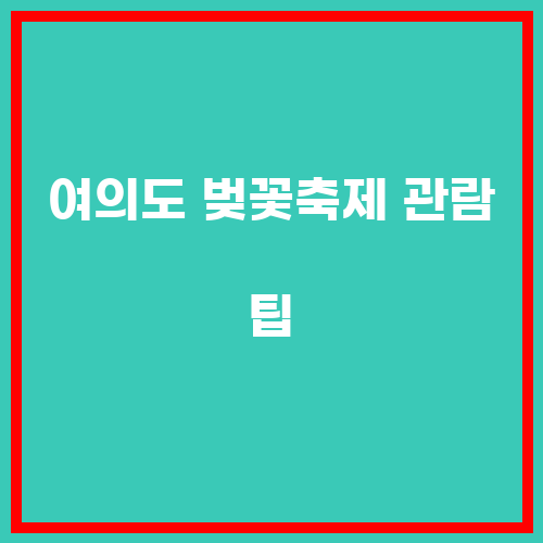 여의도 벚꽃축제 관람 팁