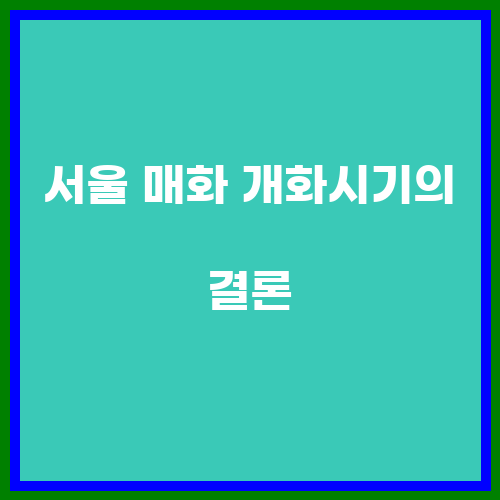서울은 매년 3월에서 4월 사이에 화려한 매화꽃이 만개하는 아름다운 계절을 맞이합니다. 이 기간에는 서울의 다양한 공원과 길가, 정원 등 곳곳에서 매화나무가 활짝 핀 매화꽃으로 인해 아름다운 풍경을 연출합니다. 서울의 매화 개화시기는 봄을 맞아 다양한 이벤트와 축제가 열리는 시기로도 유명하며, 많은 관광객들이 이 아름다운 꽃을 감상하기 위해 서울로 찾아옵니다.
