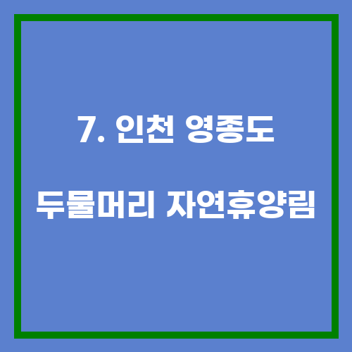 겨울철 서해안을 여행하는 동안 자연 속에서 힐링하고 싶다면 인천 영종도 두물머리 자연휴양림을 방문해보세요. 두물머리 자연휴양림은 자연 그대로의 아름다움을 느낄 수 있는 곳으로, 숲속을 걸으면서 산책을 즐길 수 있습니다. 특히 겨울철에는 숲속의 나무들이 맑은 공기를 만들어내어 상쾌한 느낌을 주기 때문에 힐링 효과를 더욱 느낄 수 있습니다. 또한, 자연 속에서 조용히 쉬면서 스트레스를 해소할 수 있는 좋은 장소입니다.