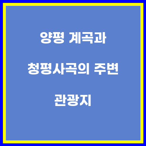 양평 계곡과 청평사곡은 각각의 주변에 다양한 관광 명소들이 위치하고 있습니다. 양평 계곡 주변에는 양평 레일바이크, 양평 어린이 체험농장, 양평 농촌체험마을 등 다채로운 관광 명소들이 있어, 가족 단위 여행객들에게 좋은 선택지가 될 것입니다. 반면에 청평사곡 주변에는 청평사, 청평호 등의 관광 명소들이 있어, 문화와 자연을 함께 즐기고 싶은 이들에게 추천하는 여행지입니다.