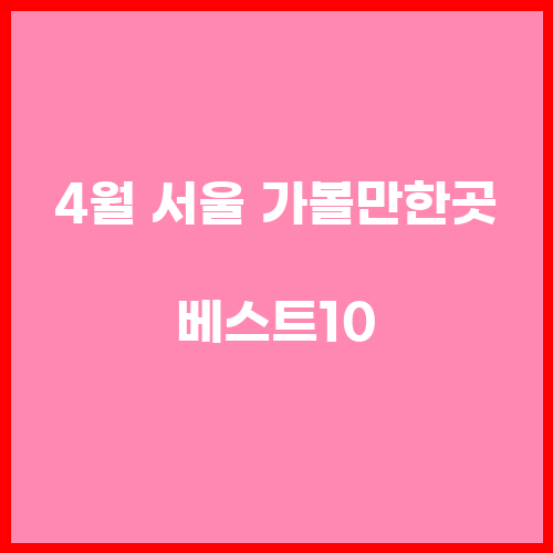 4월에 서울을 방문하는 관광객들에게는 위에서 소개한 10곳이 가볼만한 곳으로 추천됩니다. 각각의 장소에서는 서울의 아름다운 봄 풍경을 감상하고 다양한 문화와 예술을 경험할 수 있으며, 맛있는 음식을 즐기며 휴식을 취할 수 있는 좋은 장소들입니다. 방문 전에는 각 장소의 운영 시간과 프로그램 일정을 확인하여 즐거운 여행을 계획해 보는 것이 좋습니다. 함께 가족이나 친구들과 즐거운 시간을 보내고 좋은 추억을 만들어 보세요!