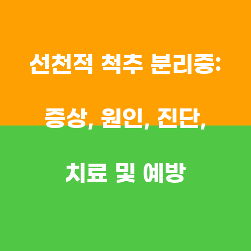 선천적 척추 분리증은 척추의 일부가 정상적인 위치에서 벗어나는 흔한 신체 이상 중 하나입니다. 이 질병은 대개 선천적으로 발생하며, 태어날 때부터 발견될 수 있습니다. 일부 환자들은 증상이 없는 채로 성장할 수 있지만, 다른 사람들은 통증이나 신경 손상과 같은 심각한 증상을 겪을 수도 있습니다.