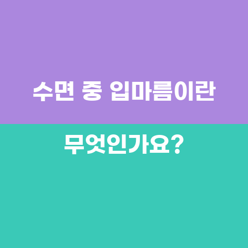 수면 중 입마름은 주로 수면 중에 입에서 나는 물질로, 대개는 침이나 분비물이며 때로는 피도 포함될 수 있습니다. 이는 수면 중에 발생하며, 일어나는 이유와 원인은 다양합니다. 수면 중 입마름은 일반적으로 건강에 직접적인 위험을 초래하지는 않지만, 가끔씩 불편함을 초래할 수 있습니다.