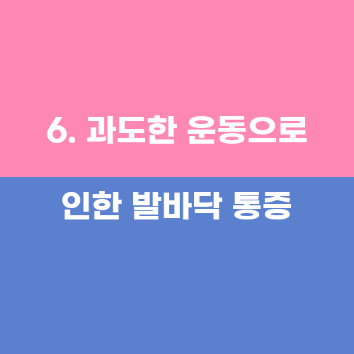 마지막으로, 과도한 운동으로 인한 발바닥 통증도 있습니다. 너무 긴 시간 동안 달리기나 걷기를 하거나 과도한 체력 운동을 할 경우 발바닥에 무리가 갈 수 있고 통증이 발생할 수 있습니다. 적절한 휴식과 스트레칭을 통해 발바닥 근육을 회복시키는 것이 중요합니다.