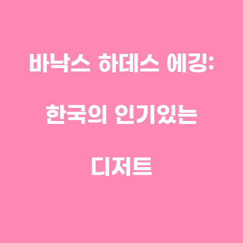바낙스 하데스 에깅은 한국에서 비교적 최근에 인기를 얻기 시작한 디저트로, 바나나와 초콜릿의 맛을 함께 즐길 수 있는 새로운 디저트로 소개되었습니다. 한국인들의 입맛에 잘 맞는 바나나와 초콜릿의 맛을 조화롭게 섞어 만든 바낙스 하데스 에깅은 많은 이들에게 사랑받는 디저트로 자리매김하게 되었습니다. 현재 한국의 다양한 디저트 가게나 카페에서 쉽게 만나볼 수 있는 바낙스 하데스 에깅은 많은 이들에게 인기를 얻고 있는 디저트 중 하나입니다.
