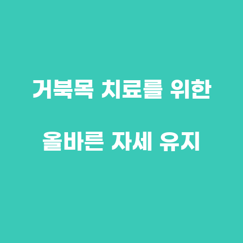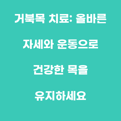 거북목을 치료하기 위해서는 먼저 올바른 자세를 유지하는 것이 중요합니다. 올바른 자세를 유지하기 위해서는 목을 곧게 세우고 어깨를 펴고, 등을 곧게 펴 앉는 자세를 유지해야 합니다. 또한, 스마트폰이나 컴퓨터를 사용할 때에는 화면을 높이 조절하여 눈높이에 맞추어 사용하는 것이 좋습니다. 또한, 자세 교정을 위해 목을 뒤로 기울이는 스트레칭 운동을 꾸준히 실시하는 것도 좋은 방법입니다.