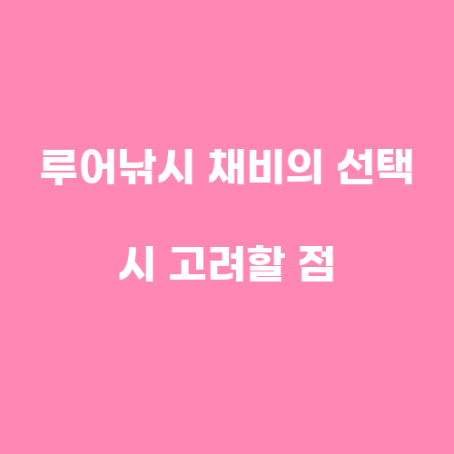 루어낚시 채비를 선택할 때에는 몇 가지 고려할 점이 있습니다. 먼저, 어떤 종류의 물고기를 낚을 것인지를 고려하여 적절한 루어를 선택해야 합니다. 또한, 어떤 종류의 낚시 방법을 사용할 것인지를 고려하여 적절한 낚싯대와 릴을 선택해야 합니다. 또한, 개인의 취향과 낚시 실력을 고려하여 적절한 루어낚시 채비를 선택해야 합니다.
