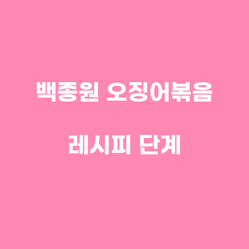 백종원 오징어볶음 레시피 단계